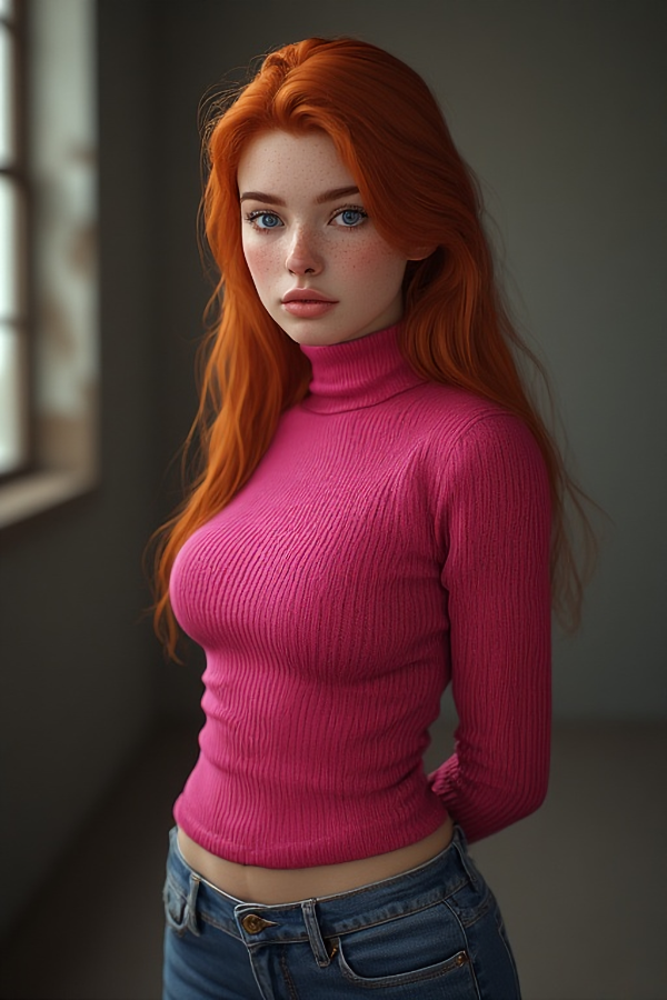 Description: 5'6", blue eyes, red hair, freckles, curvy petite, C cup. (And a smooth pussy)