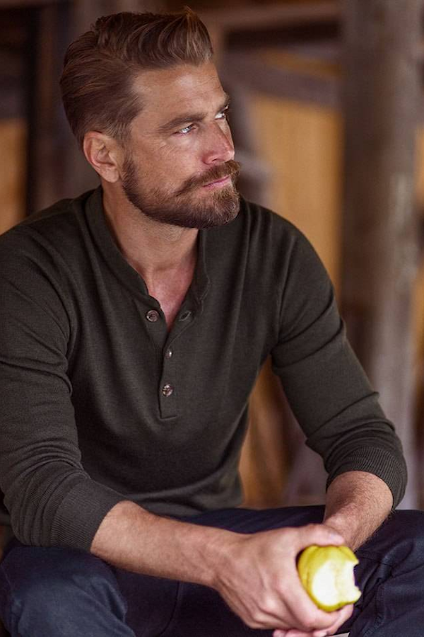 Description: 183 cm (6ft for the imperial units affecionados), dark hair in a classic cut with white striations to the temples, hazel eyes, trimmed beard with fade...a lot of salt and not enough pepper. Large muscular shoulders, wide chest ...and a round belly to complement...yep, hard to ignore that , but good for the cuddle-enthusiast (or post ravaging resting place)